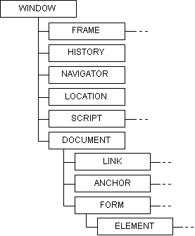These objects are organized in the following hierarchy (the dotted line following an object indicates that multiple objects may exist):
