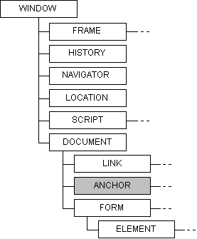 An object that resides below the document in the scripting object model. This object specifies an array of anchors for a given document. Each entry in this array corresponds to an anchor tag, <A>, that is found in the corresponding document.